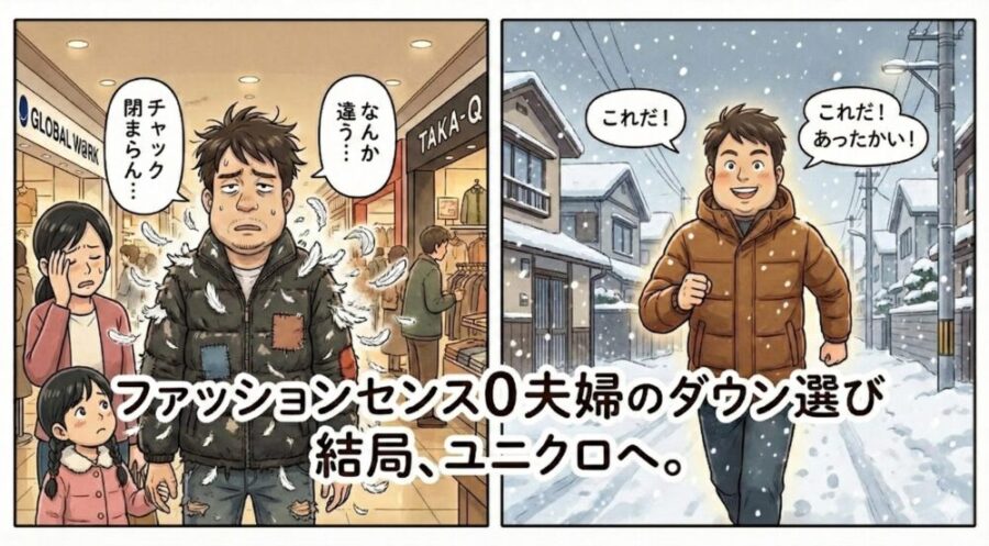 ダウンジャケット選びに勤しむ夫の口から漏れるのは、ネガティブな言葉のオンパレードである。