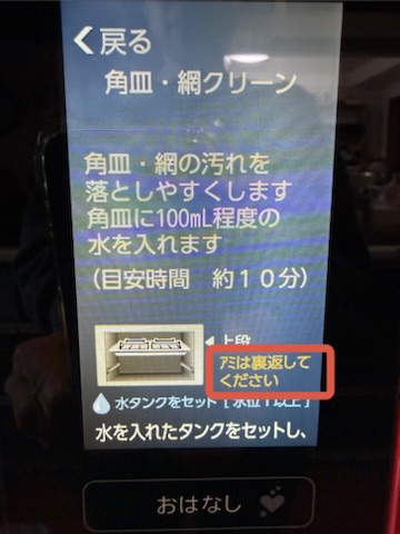 庫内のニオイや網にこびりついた魚の汚れも、ヘルシオのお手入れ機能である「庫内クリーン」や「角皿・網クリーン」を使えば、汚れが浮き上がり、スルッと取れる。